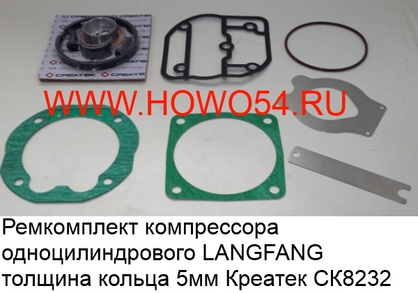 Ремкомплект компрессора одноцилиндрового LANGFANG толщина кольца 5мм Креатек CK8232 61800130043-XLB